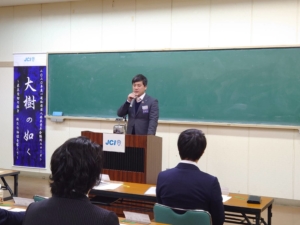 3月21日(土)安来商工会議所にて3月例会事業を開催いたしました。今回の事業は、当青年会議所の副理事長 中田康太君を講師として「JCにおける事業の意義・目的、運動と活動・LD」について講演を行っていただきました。